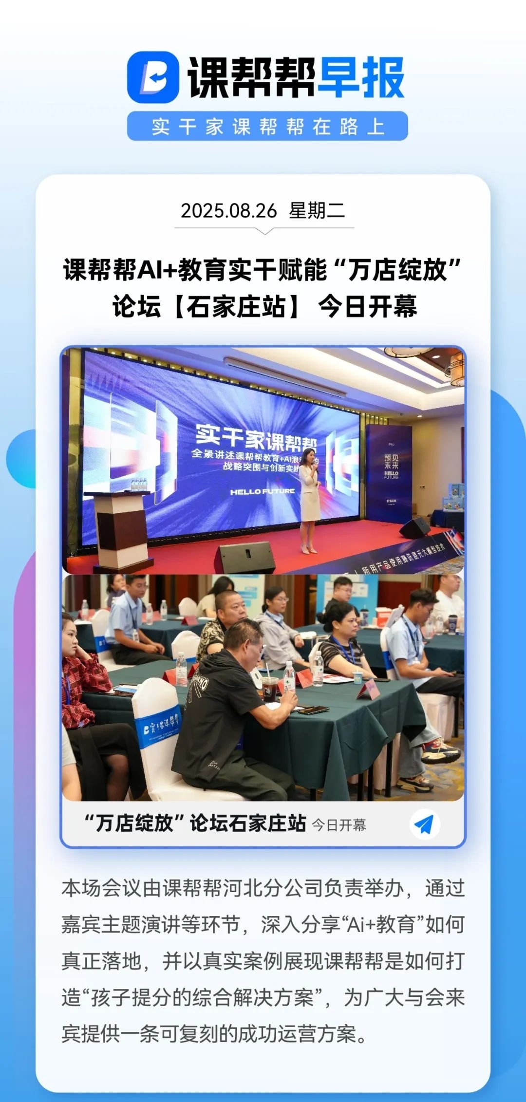 课帮帮AI+教育实干赋能“万店绽放” 论坛 石家庄站 今日开幕 ...