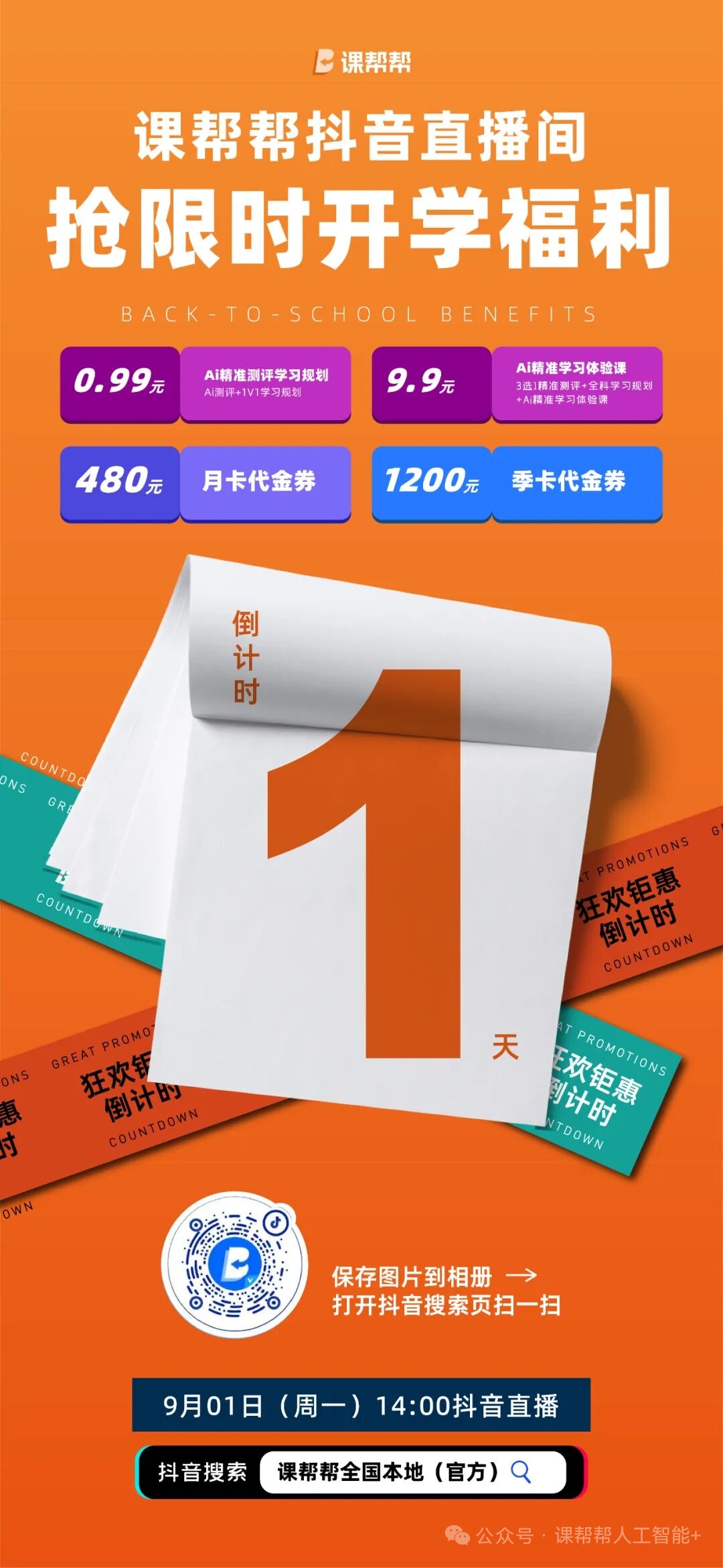 课帮帮抖音直播间抢限时开学福利