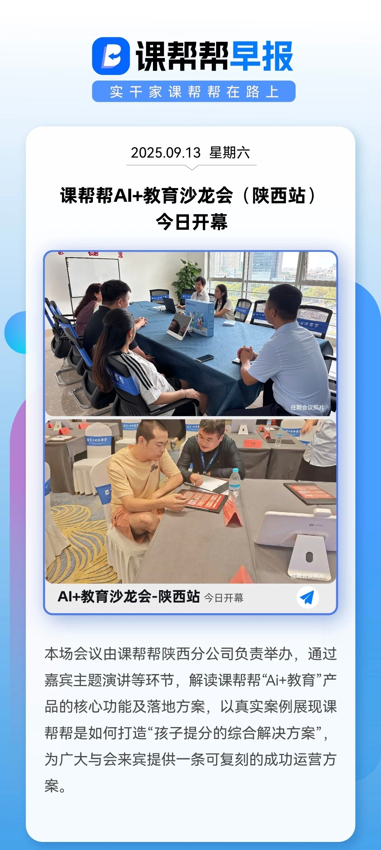 课帮帮Al+教育沙龙会(陕西站) 今日开幕