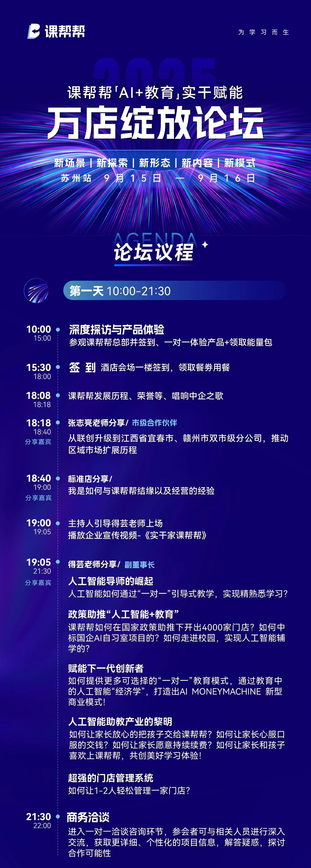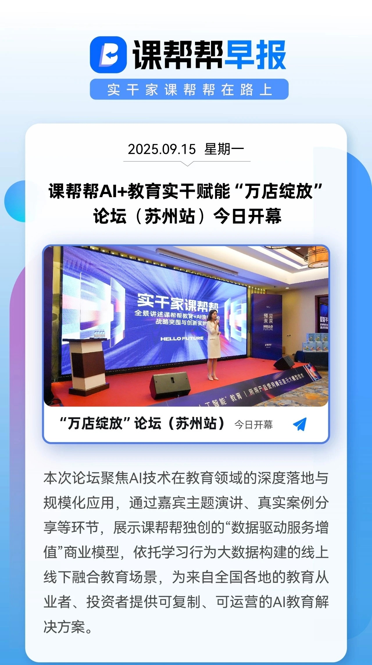 课帮帮AI+教育实干赋能“万店绽放” 论坛(苏州站)今日开幕