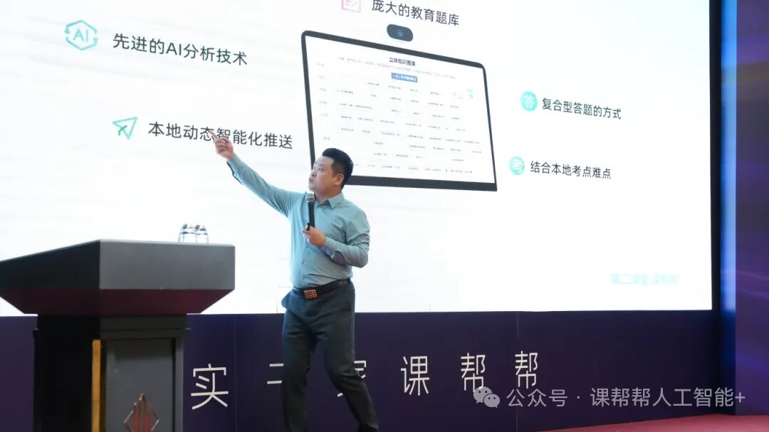论坛上,课帮帮运营总监系统阐释了如何借助AI智习室构建“线上线下融合”教育新场景。该模式依托纳米级知识图谱与学习行为大数据分析,为学生提供个性化学习路径,同时为合作机构提供涵盖招生支持、师资培训、运营管理和效果评估的全链条赋能体系。多位已落地合作的嘉宾登台分享实战成果,表明课帮帮不仅有效提升学生续费率和成绩表现,而且回本周期短,模型可复制性强、区域适应性高。