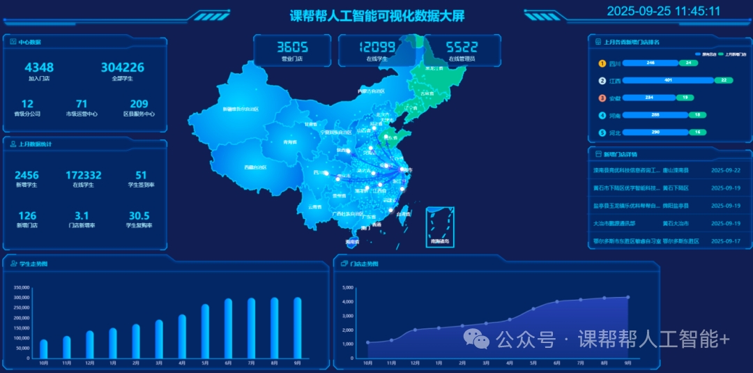 在商业扩张上,课帮帮以“轻资产、强技术、快回报”为特质,为合作伙伴提供一站式服务。截至2025年9月,课帮帮全国总门店数量已超过4000家,单店平均3个月实现盈利,学员续费率超90%。