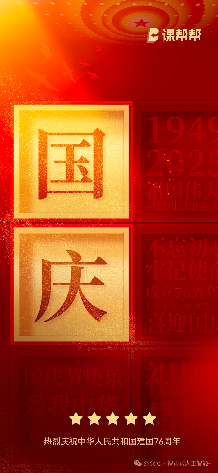金秋十月,山河锦绣。值此国庆华诞,课帮帮向每一位孜孜以求的学子与携手同行的合作伙伴致以诚挚祝福!