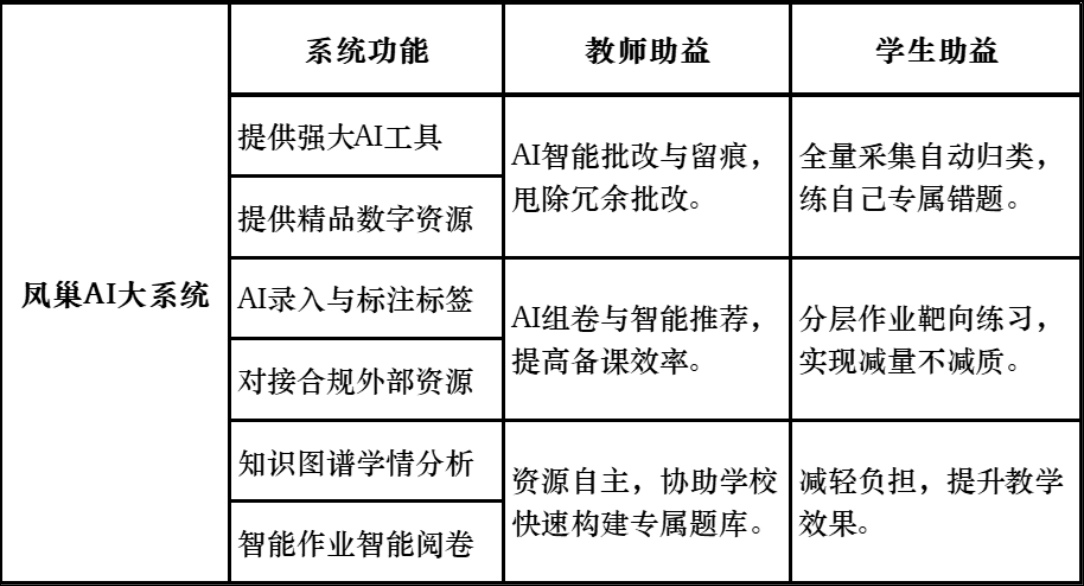 凤巢AI大系统以“AI+教育服务”为核心,通过AI智能硬件作为数据载体,打通校内校外学习场景,构建深度定制的“一对一”精熟学习方案,服务于“政府到消费者(GBToC)”多元渠道,致力于成为教育深度定制与精准化解决方案专家。我们主动“换赛道”,从饱和市场转向AI教育定制化供应链这一增量领域;同时“换玩法”,以数字化与差异化重构竞争逻辑——从“卖产品”升级为“卖解决方案”。与其在红海中内卷,不如换一张新卷、答一道新题。凤巢以AI大数据为驱动,面向机构提供“一机多用户”服务,面向学生提供“一机一用户”终端,真正实现教育深度定制,成为校内校外一体化的AI学习定制专家。