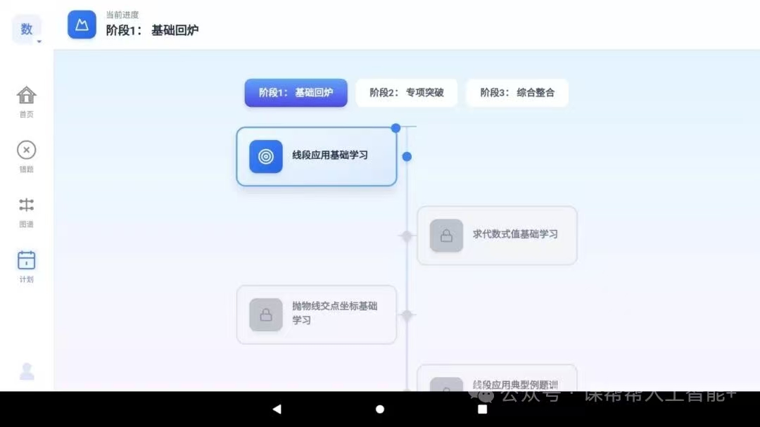 3.凤巢AI app凤巢AI平板端app主要分为4大功能:21天定向提升计划、消灭错题、超前学、知识点图谱。