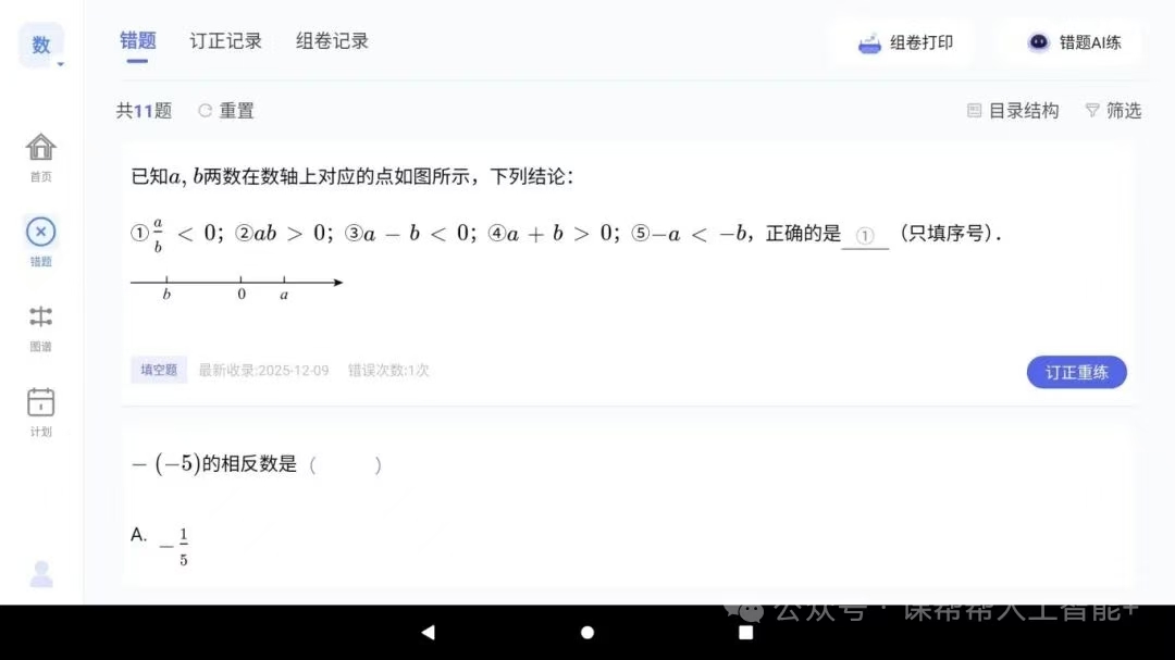 (2)消灭错题所有错题统一收录,可对错题进行订正重练,同时有针对错题的视频讲解和举一反三练习;可以对错题进行AI强化训练。
