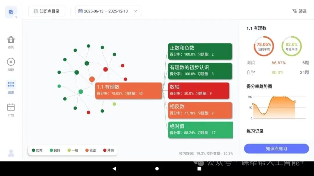 (4)知识点图谱以图谱形式呈现孩子知识点掌握情况,进行薄弱知识点的专项攻克。