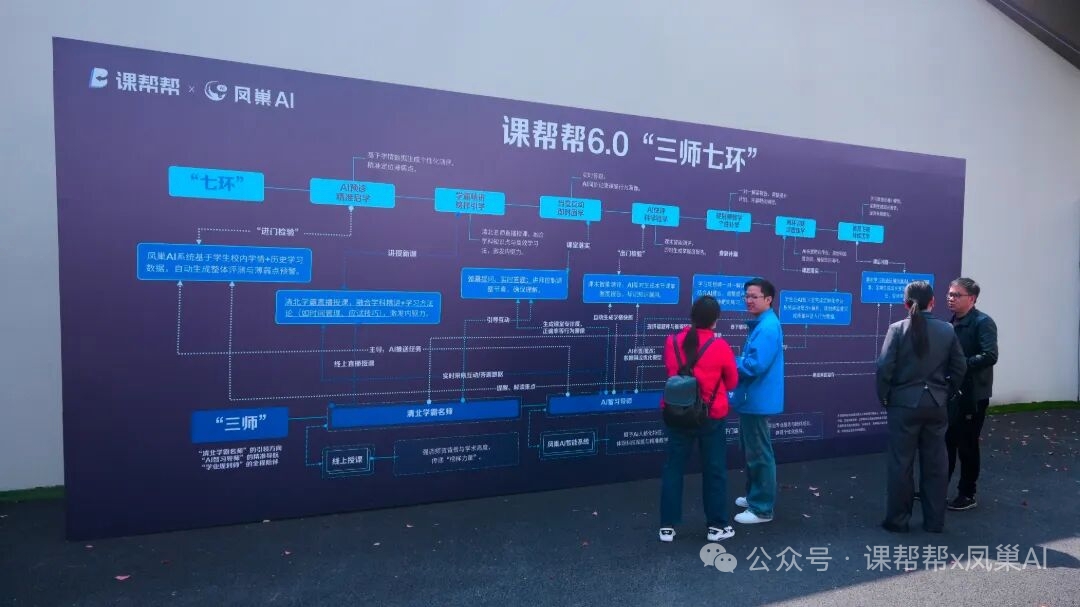 本次会议最大亮点是课帮帮×凤巢AI正式升级为6.0,所创新的“三师七环教学法”为教学提分打造了闭环体系,为教育机构打通了一条突围之道。这一模式的升级,让课帮帮×凤巢AI智习室从“智能硬件+AI系统”升级为“优质内容+智能平台+线下服务”的完整教育生态。