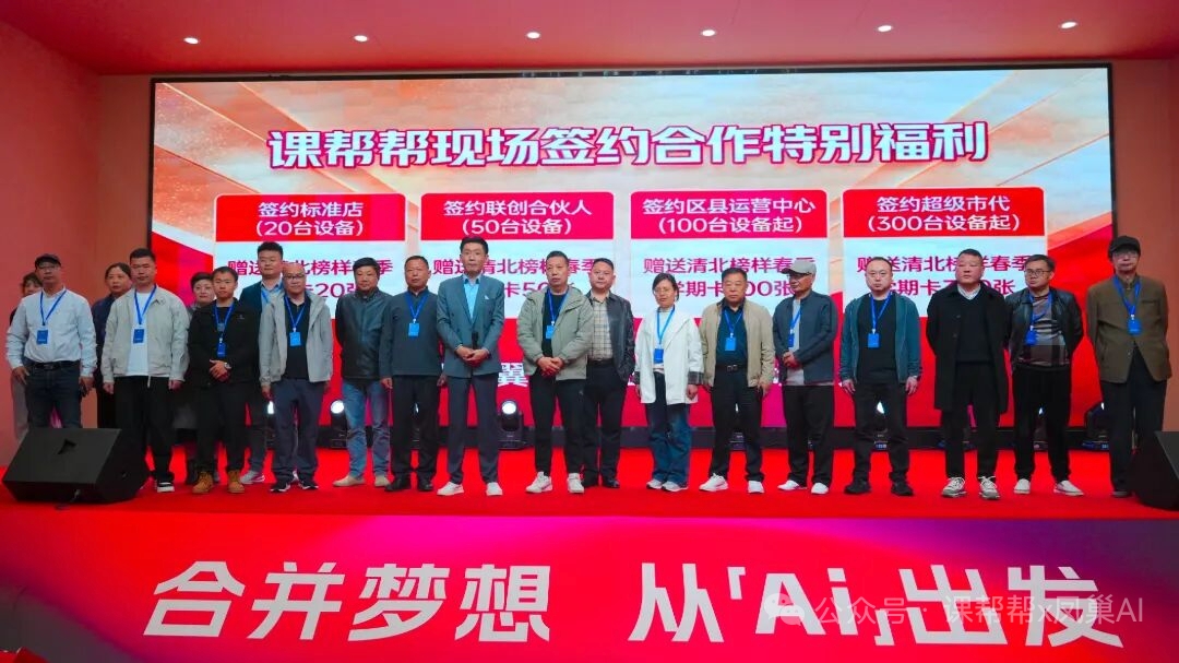 3月30日,课帮帮×凤巢AI「AI+教育」盈利新路径项目招商会在苏州课帮帮人工智能产业园圆满落幕。本次发布会以“线下实景扎根×云端伴学扩维×入校深度定制三层联动战略”为核心亮点,深入浅出为教培机构及区域合作伙伴绘制了一条从门店运营到校园合作的清晰发展路径,现场反响热烈,签约成果丰硕。